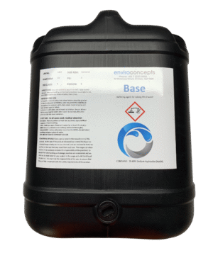 Base – 20 L Drum Overview Enviroconcepts Base, is a concentrated alkaline buffer, engineered to lift pH quickly in process or wash water streams. It integrates seamlessly with Enviroconcepts treatment systems for safe, controlled neutralisation and compliance.